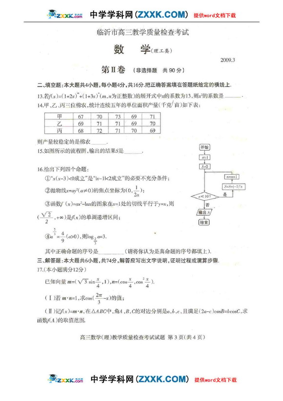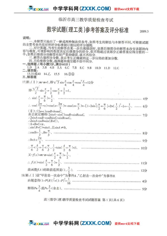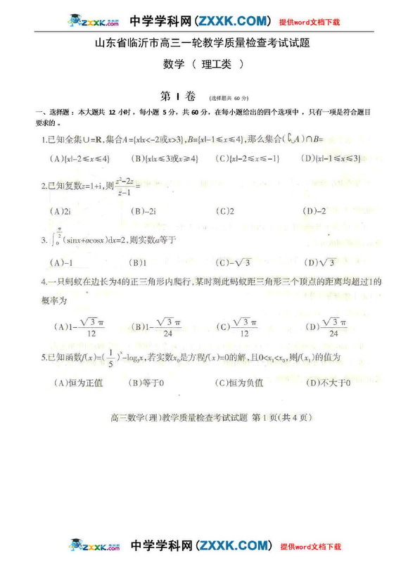 山东省临沂市高三一轮质量检查考试数学理