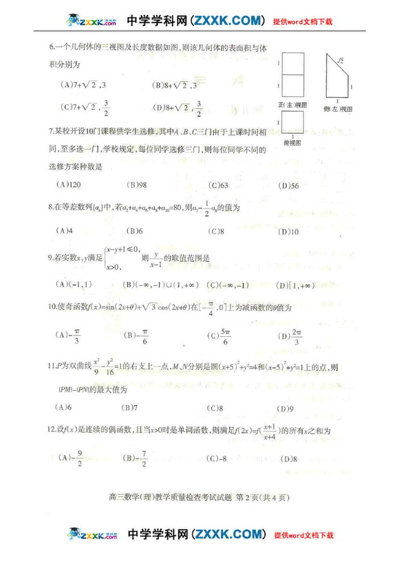 2009年高考理科数学模拟试题及答案(新