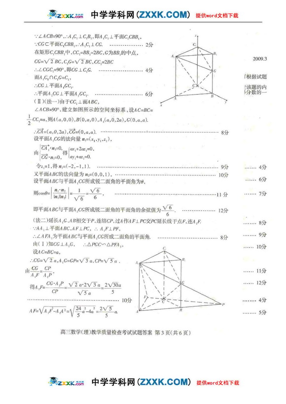 2009年北京市朝阳区高三一模理科数学试