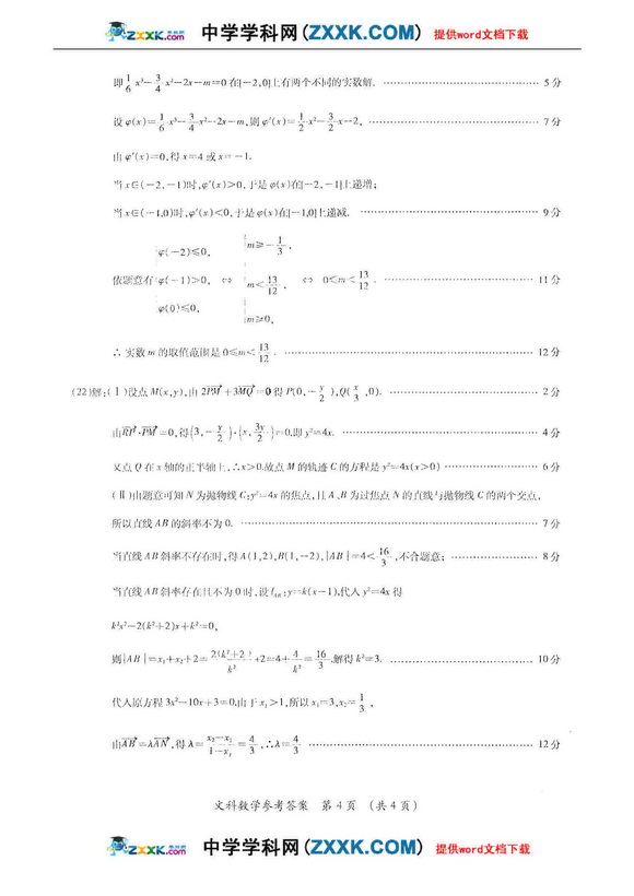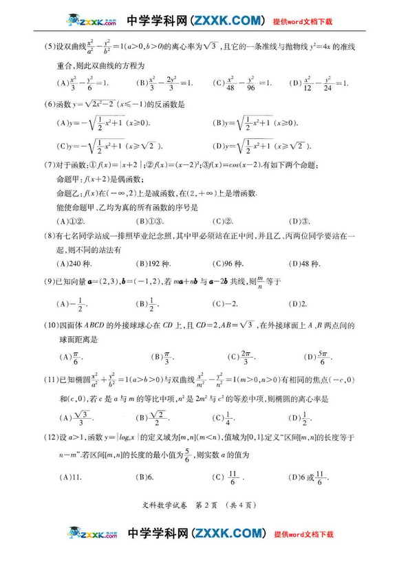 2011高考数学文模拟试题及答案(新课标