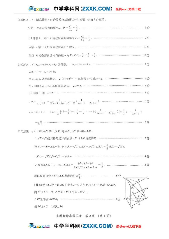 广东广州2011二模数学文科试题及答案