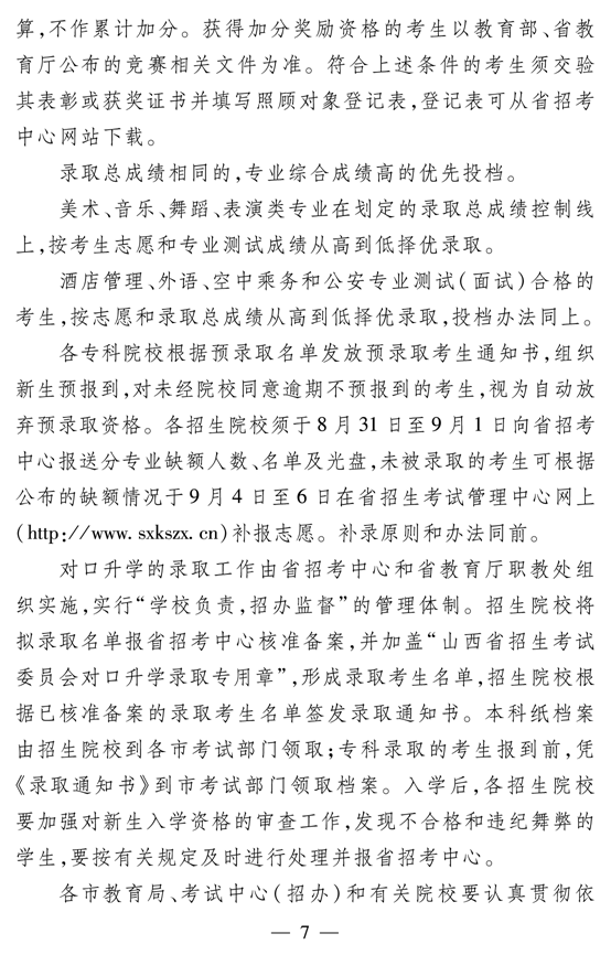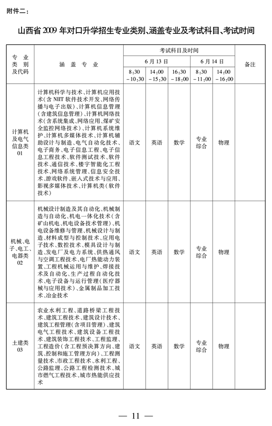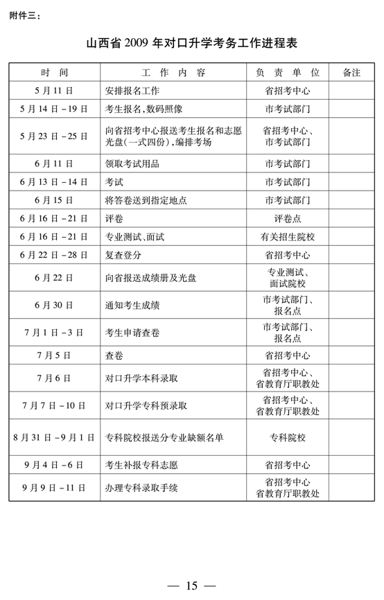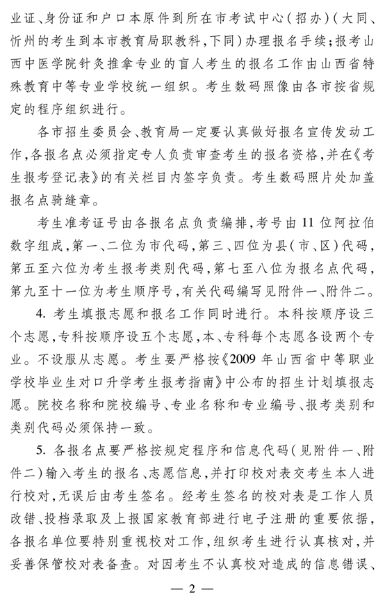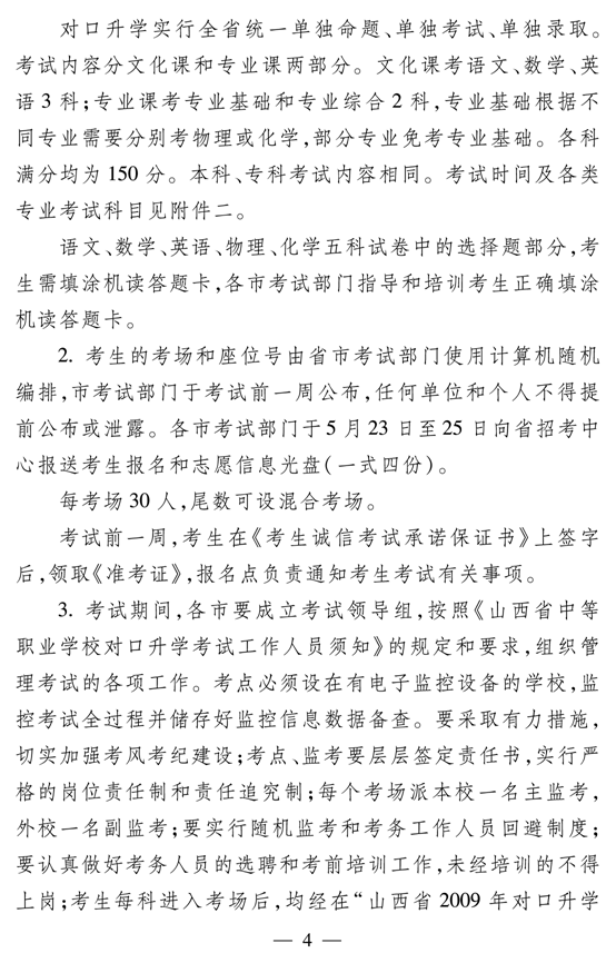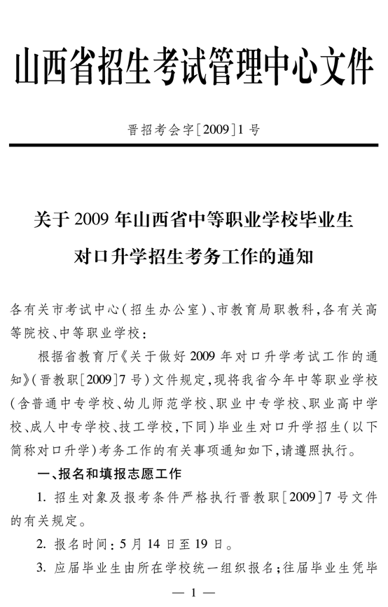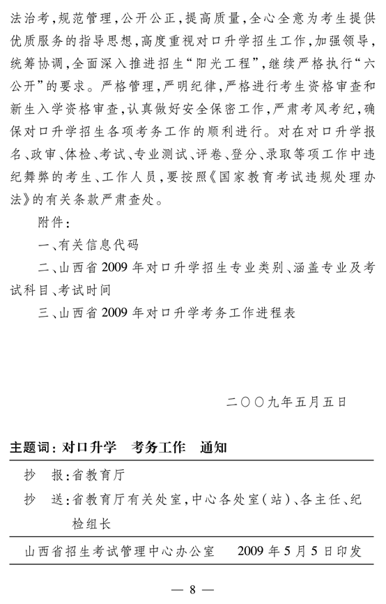 2009年山西省中职学校对口升学招生考务工作的通知