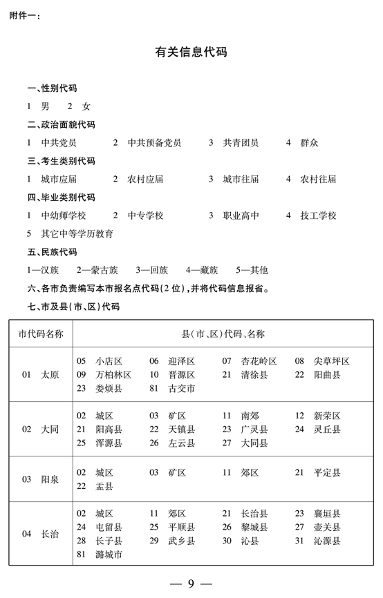 整理自:山西省招生考试管理中心 2009-5-12 14:30:56