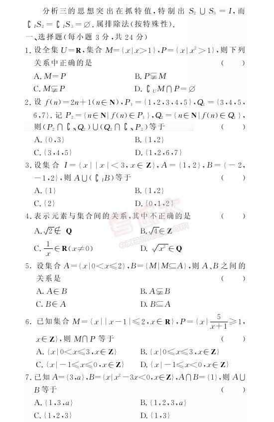 金版1+1:2007年高考数学考点双测集合