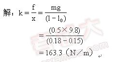 例:有一根弹簧的长度是15厘米,在下面挂上0.5千克的重物后的长度变成了18厘米,求弹簧的劲度系数。