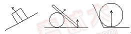 应注意第3张图中斜面与球间无弹力,可采用把斜面移开的方法看物体的平衡是否被破坏来判断。