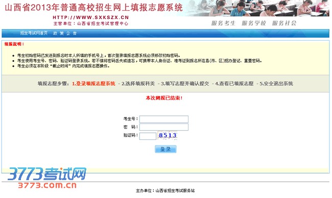 山西省2013年普通高校招生网上填报志愿系统:http://gkzy2013.sxkszx.cn/