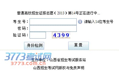 2013山西高考二本征集志愿填报系统入口