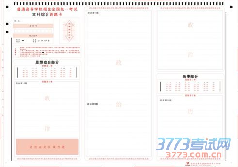 高考语文、数学、综合、英语科目均实行网上评卷,各科答题卡样式与市高招办发给考生练习的样卡基本相同,根据实际的具体试题要求做相应微调。考试时的答题卡会印有相应的题号、答题区域和提示,请考生作答时务必注意。(各科答题卡具体样式附后)