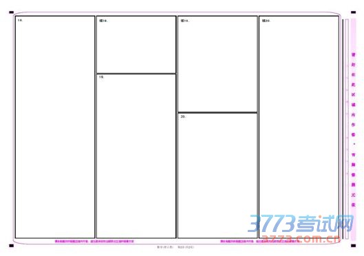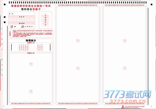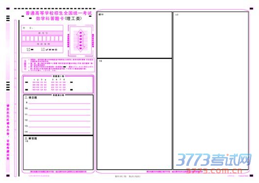高考语文、数学、综合、英语科目均实行网上评卷,各科答题卡样式与市高招办发给考生练习的样卡基本相同,根据实际的具体试题要求做相应微调。考试时的答题卡会印有相应的题号、答题区域和提示,请考生作答时务必注意。(各科答题卡具体样式附后)