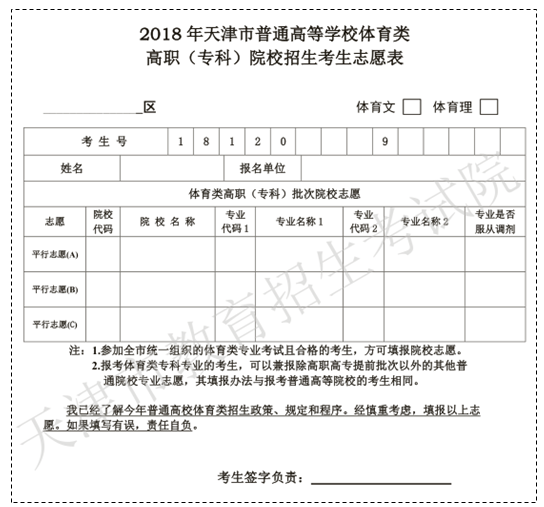 体育类本科批次实行平行志愿投档方式,设置A、B、C、D、E、F、G、H、I 9个平行院校志愿,每个院校志愿栏中设置2个专业志愿和1个专业服从调剂志愿。体育类高职(专科)批实行平行志愿投档方式,设置A、B、C 3个平行院校志愿,每个院校志愿栏中设置2个专业志愿和1个专业服从调剂志愿。