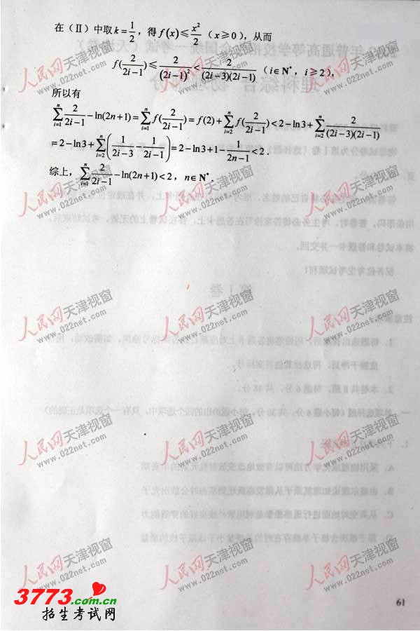 2012天津高考数学理科试卷及答案发布
