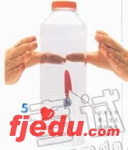 4.用力挤压瓶子,潜水员沉向瓶底。