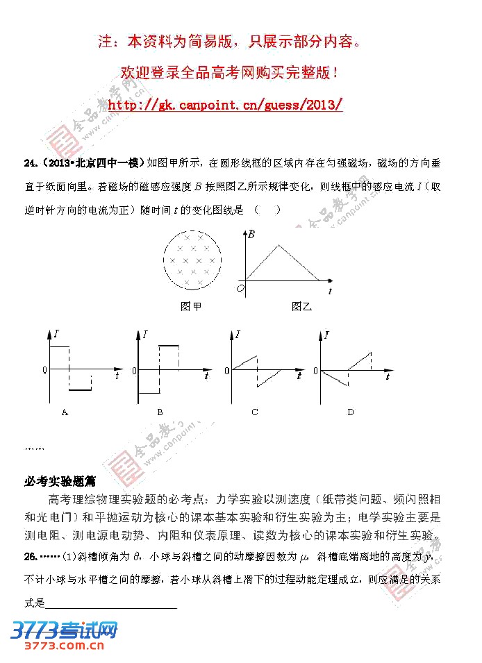2013高考试题预测:最有可能考的物理题(附答案)