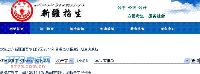 欢迎进入新疆维吾尔自治区2014年普通高校招生计划查询系统