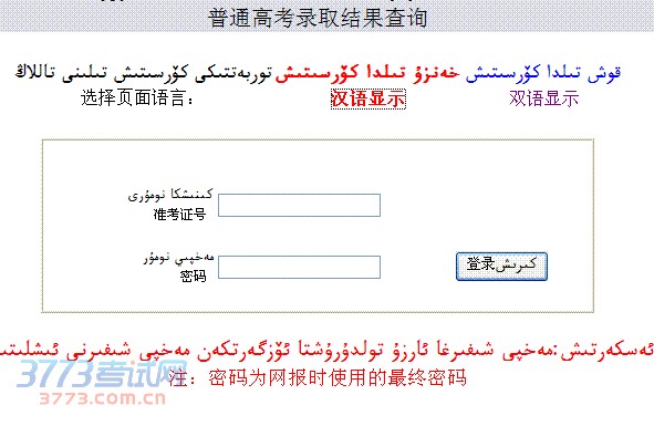 2014年新疆维吾尔自治区普通高考录取询系统(教育网入口)