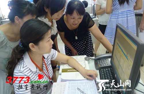 天山网讯(实习记者袁雅蕾摄影报道)7月21日,是新疆2012年普通高校招生本科二批次、三批提前批次正式开始录取的第一天,也是新疆今年普通高校招生录取第二个现场开放日活动时间,来自乌鲁木齐、昌吉地区的考生家长、教师、招生系统行风评议员等80余名代表走进普通高考招生录取现场,现场观摩并感受了网上录取工作。