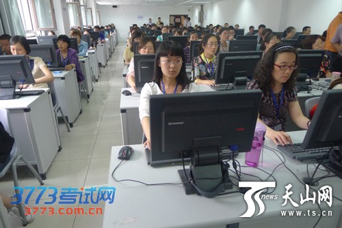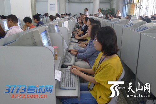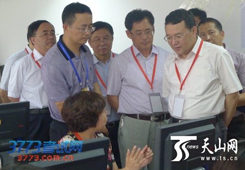 自治区党委常委尔肯江·吐拉洪(右一)视察新疆高考试卷网上评卷工作