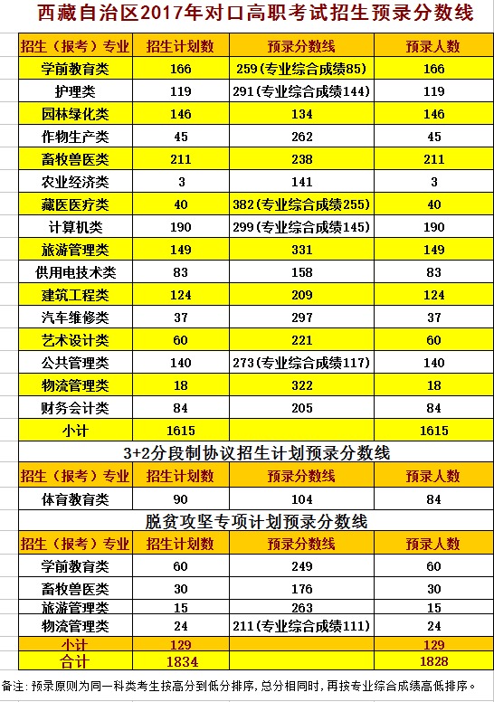 备注:预录原则为同一科类考生按高分到低分排序,总分相同时,再按专业综合成绩高低排序。