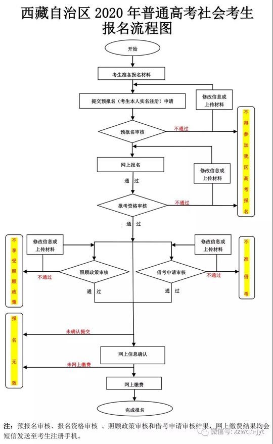 西藏自治区2020年普通高考一律实行网上填报信息、网上资格审查、网上信息确认的方式报名。网上填报报名信息时间为2020年3月20日至31日,网上资格审核和信息确认时间为4月1日至4月10日。为确保我区普通高考社会考生顺利进行网上报名,具体报名流程如下: