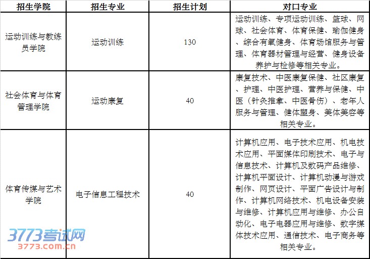 各专业按照云南体育运动职业技术学院对口招生考试方案进行,考试时间定于4月24、25日进行。考试地点为:云南体育运动职业技术学院(昆明滇池旅游度假区体院路3号。联系电话:0871—68063602),具体事宜,另发通知。