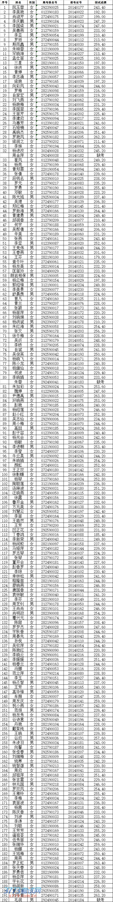 云南财经大学2014三校生综合素质及专业技能测试总成绩