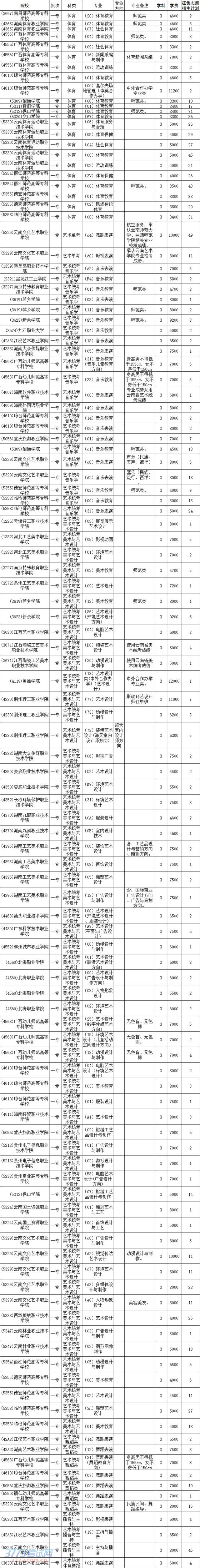 2014云南高考第一批专科艺术体育类征集志愿招生计划