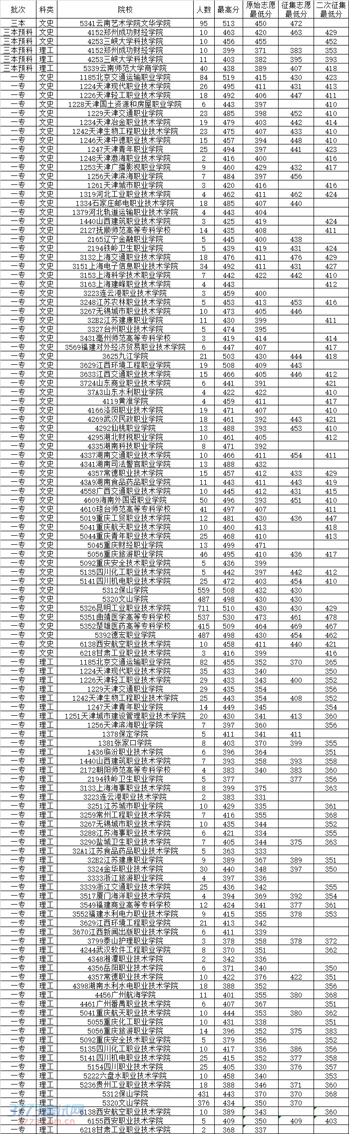 2014云南高考三本预科及一专二次征集志