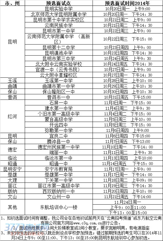 2.请前来参加预选考生携带身份证、学生证、1张2寸证件照片和黑色水笔。带队老师请携带加盖学校公章的《报考东方航空云南有限公司飞行学员学生名册》,名册上的会考成绩由学校教务处统一填写。
