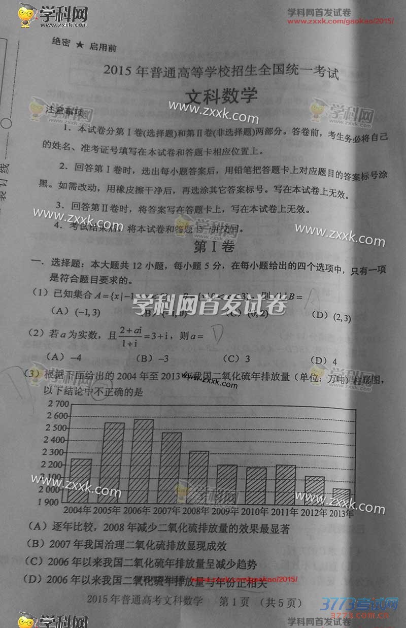 2015全国2卷高考文科数学试题试卷 2015年新课标2数学文科高考试题及答案(图片)