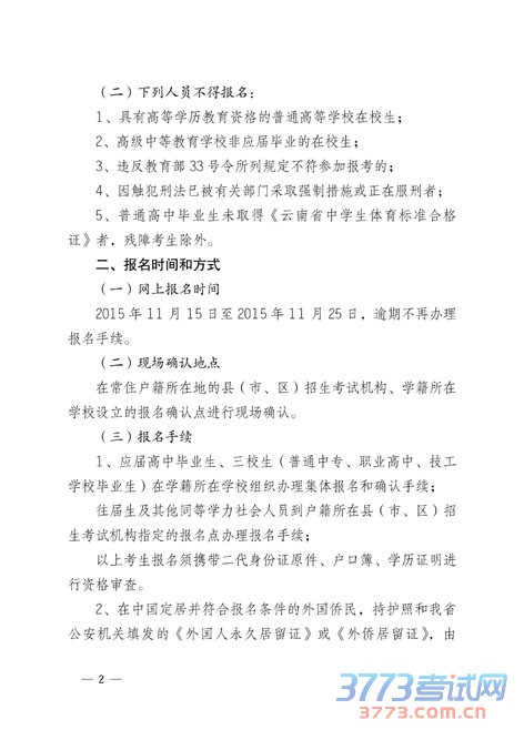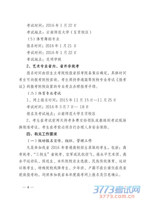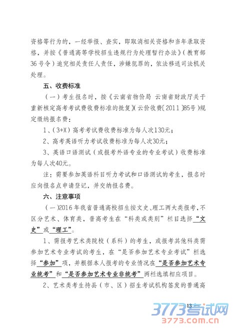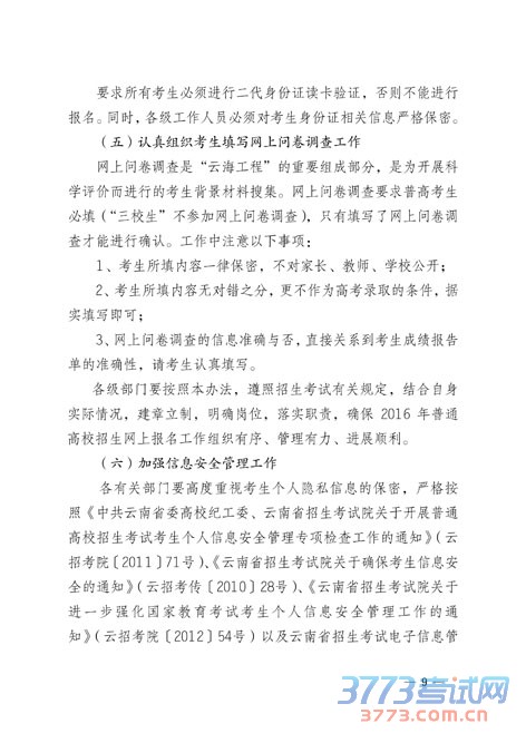 云南关于2016年普通高等学校招生全国统一考试报名工作的通知