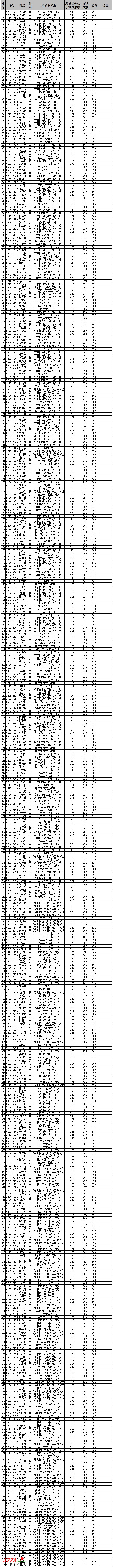 2010年云南交通职业技术学院单独招生拟录取名单公示