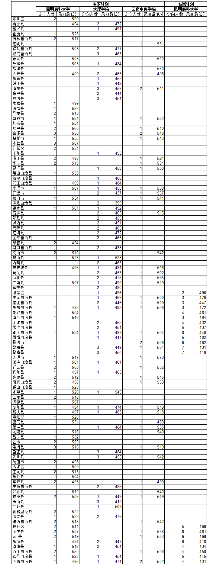 2012年云南省农村订单定向免费医学生招生情况统计表