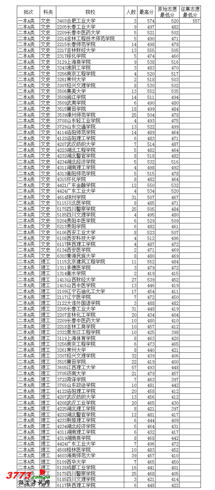 2012年7月16日云南高考录取分数线情况日报