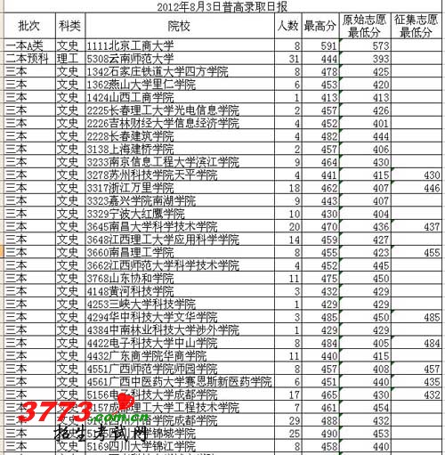 另外,一本A类的北京工商大学在滇录走文科8人,原始志愿最低分573分;云南师范大学二本预科招收理科生31人,最低分393分。