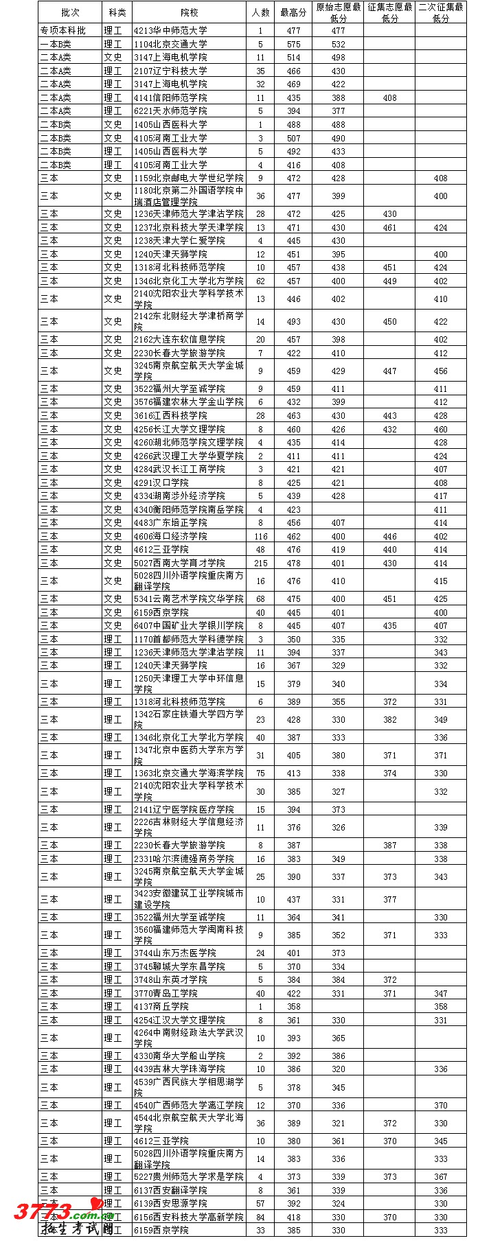 云南省招生考试院公布2012三本院校招生征集志愿情况