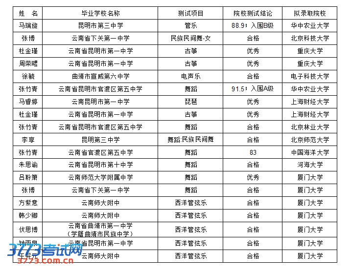 昆明冶金高等专科学校2013年单独招生录取考生名单