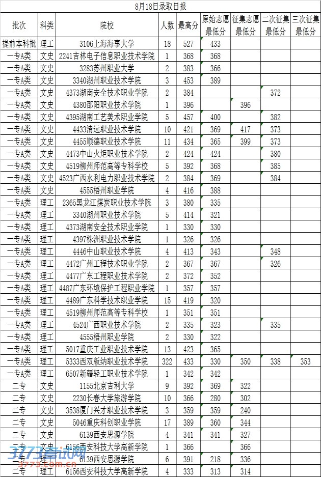 2013普高招生8月18日录取日报