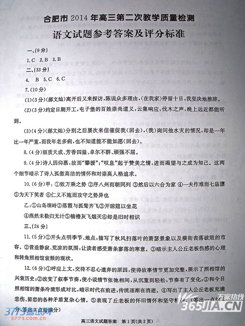 2014安徽安庆二模分数线:文科一本522理科一本465
