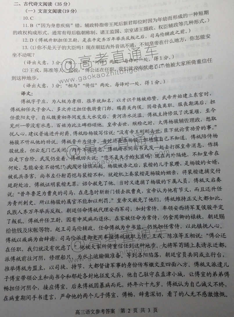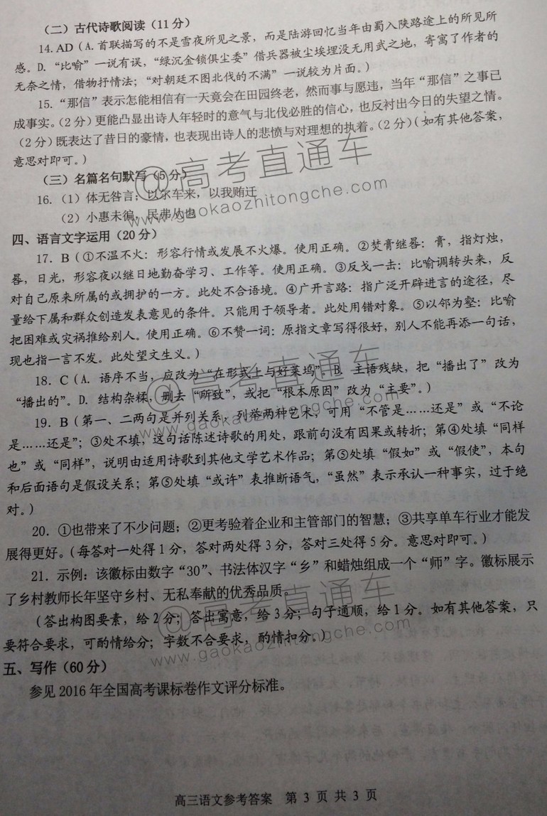 2017年3月福州市高三质检语文答案发布