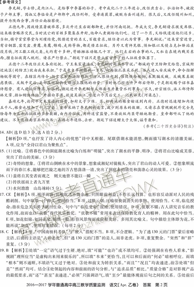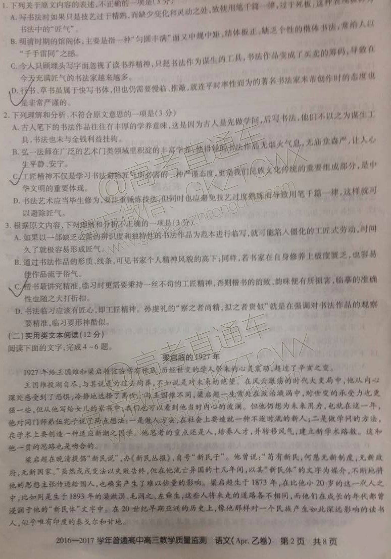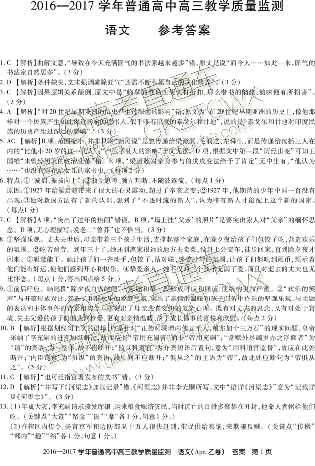 2017山西4月百校联考语文试题及参考答案