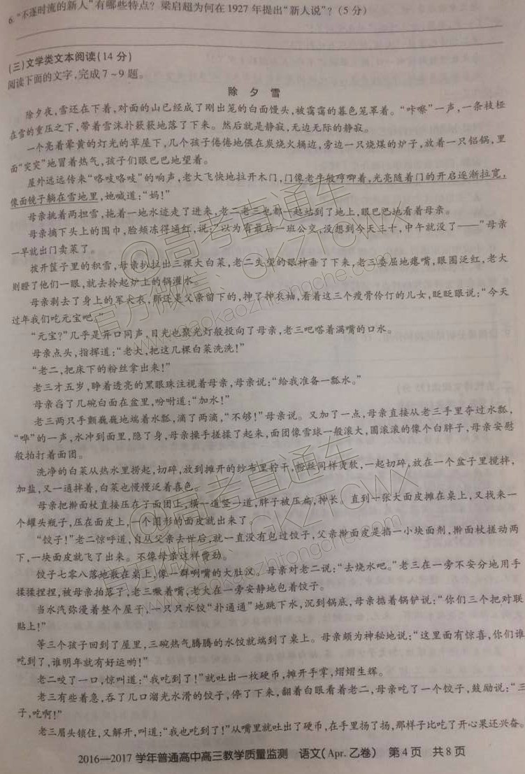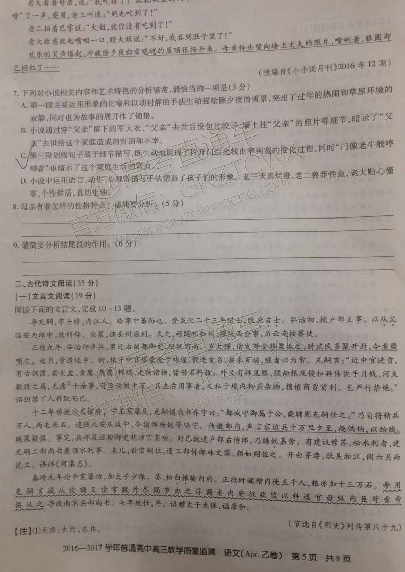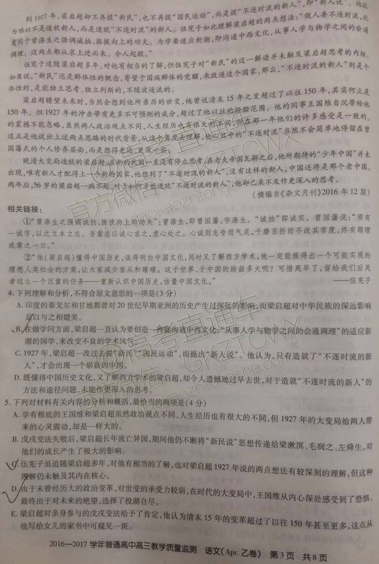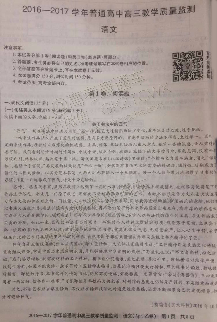 2017年4月山西百校联考语文试题及答案发布