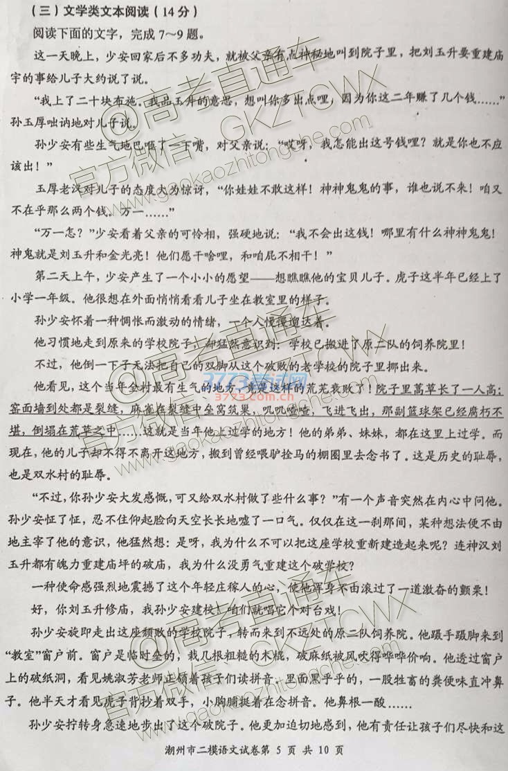 2017潮州二模语文试题及答案发布 潮州市2017高考第二次模拟考试语文答案