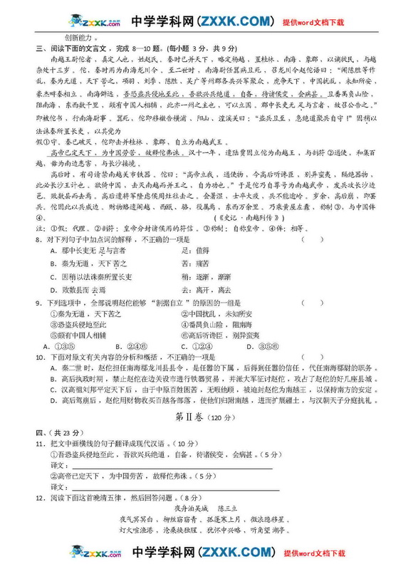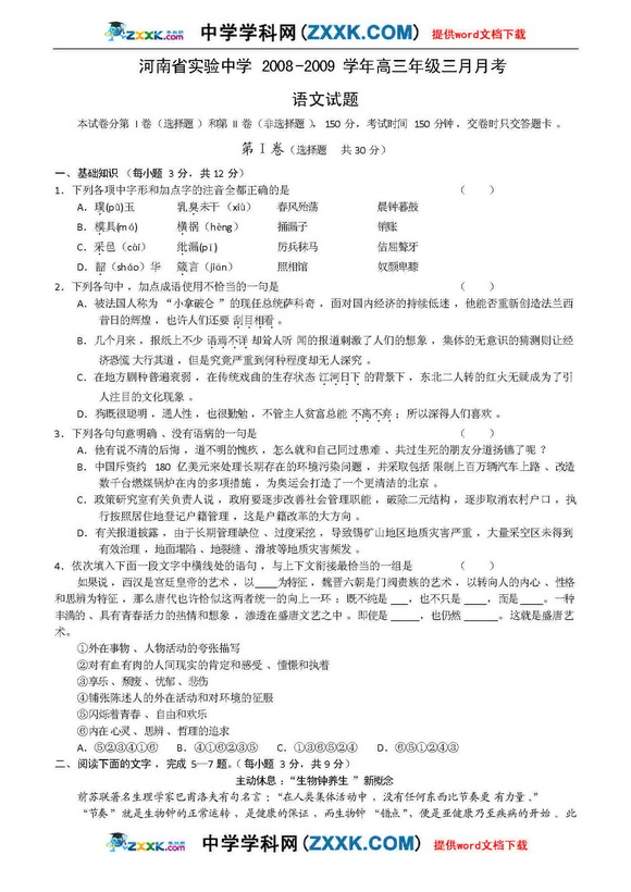 河南省实验中学09年高三第二次月考-语文