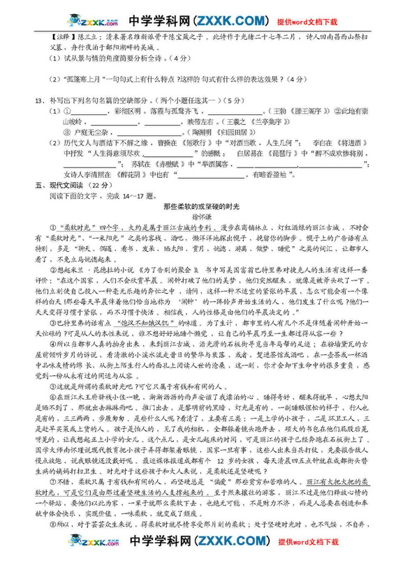 苏北四市09届高三第三次调研测试语文