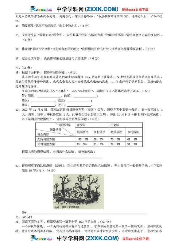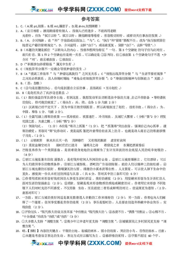 2009年语文高考应试答题技巧及评分标准