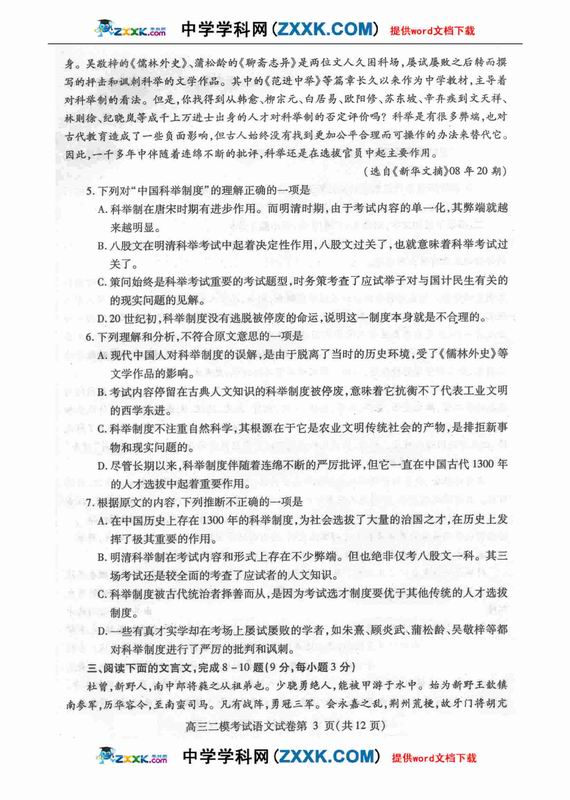 苏北四市09届高三第三次调研测试语文