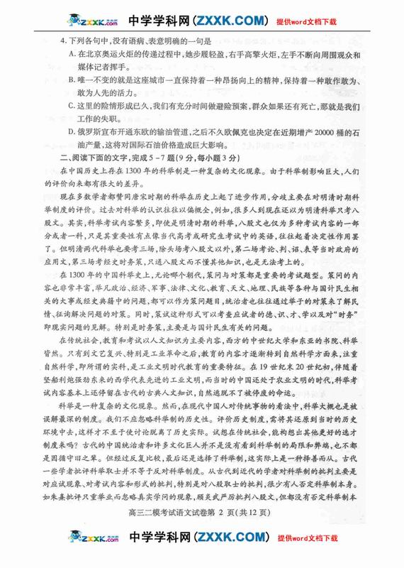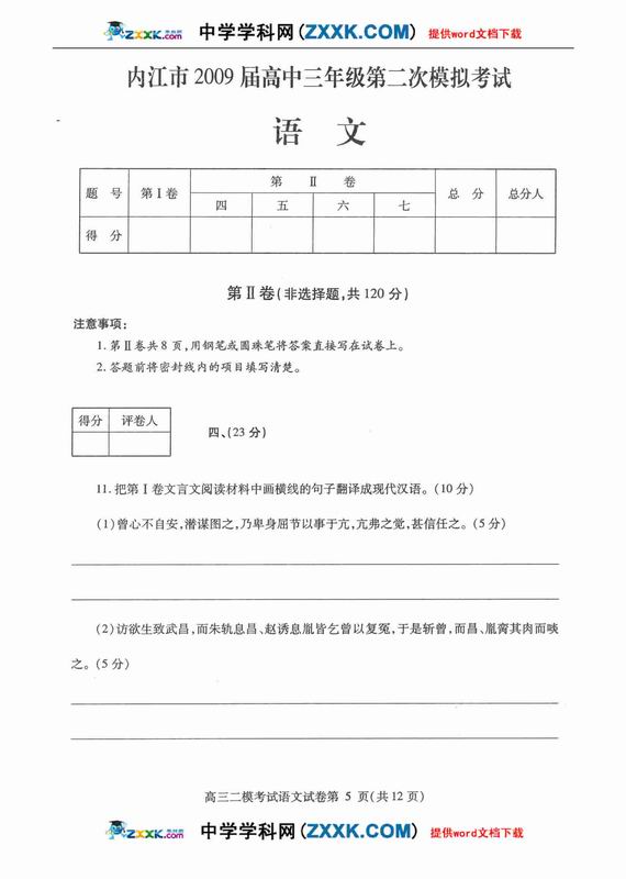 四川内江市09届高三第二次模拟试卷语文