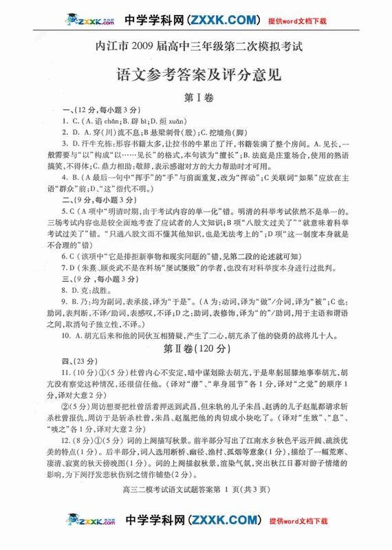 2009年语文高考应试答题技巧及评分标准