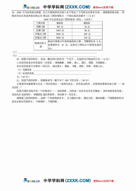 2009年语文高考应试答题技巧及评分标准